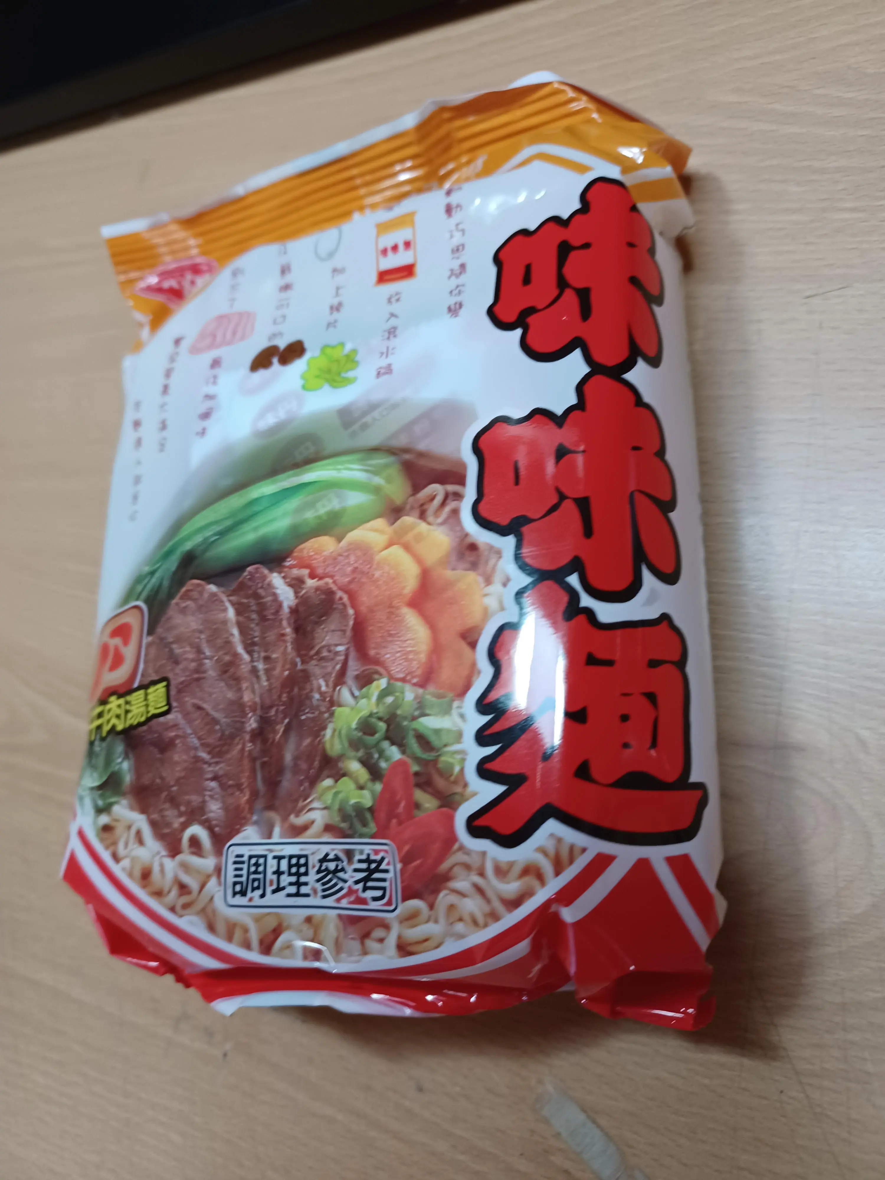 第一次吃到這種泡麵餒…只能說可以用來填飽肚子而已,沒有那種經典的泡麵香…今天要來吃味味麵,這是麵的本體,是紅燒牛肉口味的,一包的單價是約13元,算是很平價的價格。
