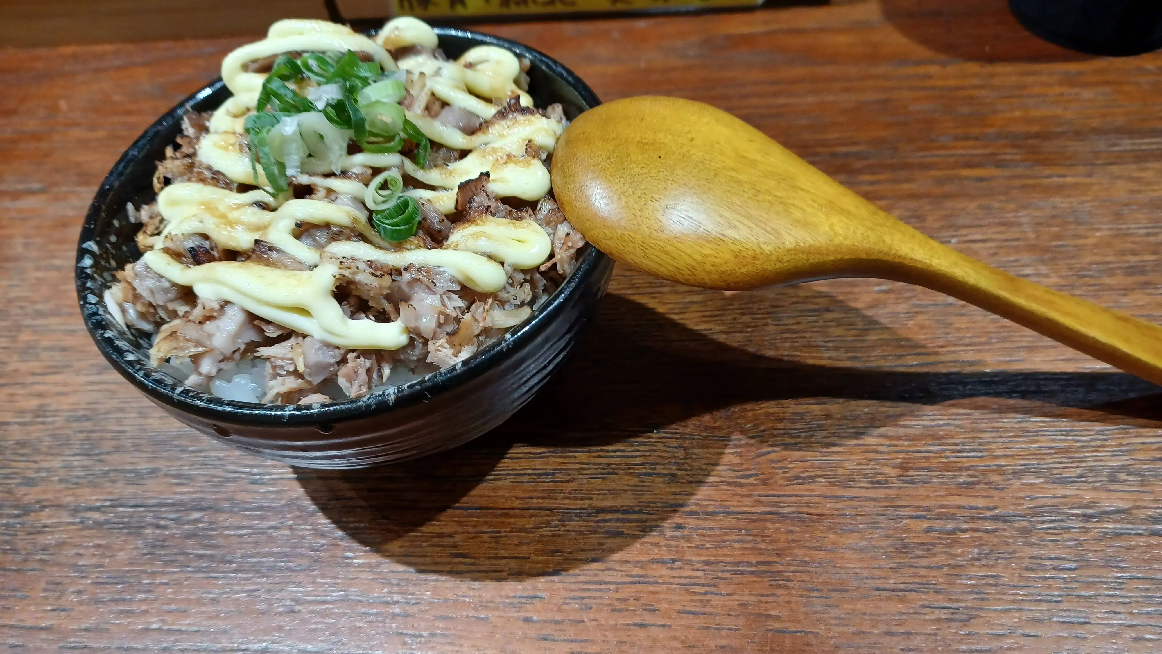 至於叉燒飯便覺得還可以而已,叉燒的肉是鹹的把她拔成絲之後放在白飯上面在擠上甜甜的沙拉,然後Do Re Mi So!施了一些魔法變成了一碗叉燒飯,叉燒本身單獅會有點太鹹,配飯不錯吃份量也很剛好但是如果稍微沒有管控好那個量就會吃到一坨白飯或是剩下一堆的鹹豬肉,個人覺得蠻扣分的。