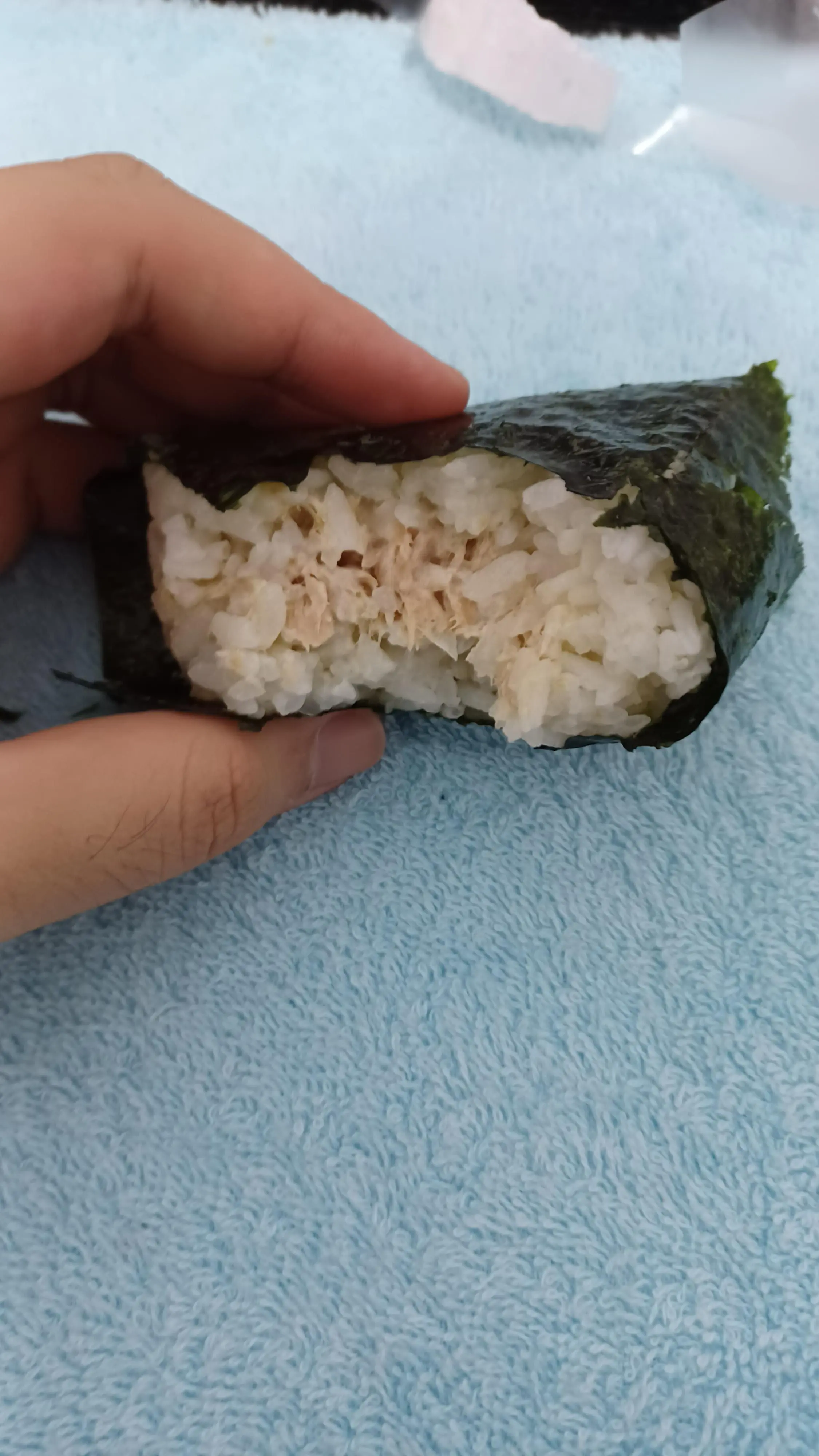剛開始吃的時候發現這個飯糰最大的問題點就是料實在是太少了,還在找鮪魚在哪裡。吃到之後卻又沒有很驚艷,吃起來就很像是鮪魚沙拉一樣,事實上我認為自己也做的出來😌