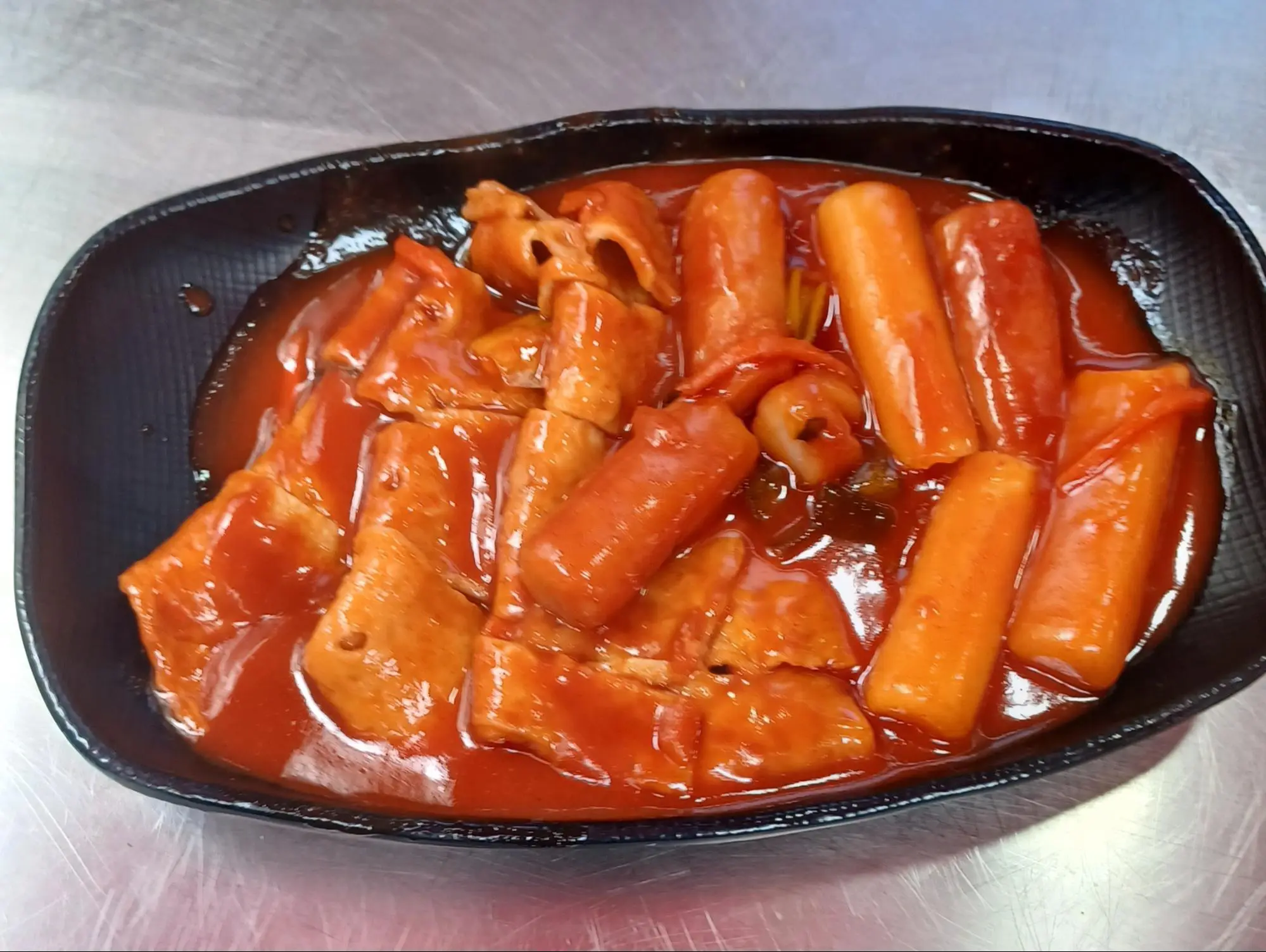 那麼我在韓國吃過的感覺如何呢?我覺得其實相去不遠耶,與台灣吃到不同的地方在於他的醬給很多也很夠味,我在想應該是要給你重複沾醬的吧… 雖然很奇怪但是它的沾醬多到能夠喝下去了,沾醬本身超級 ㄙㄨㄚˋ 嘴,味道則是有甜的而且還有一點辣,辣味還會慢慢堆積起來。