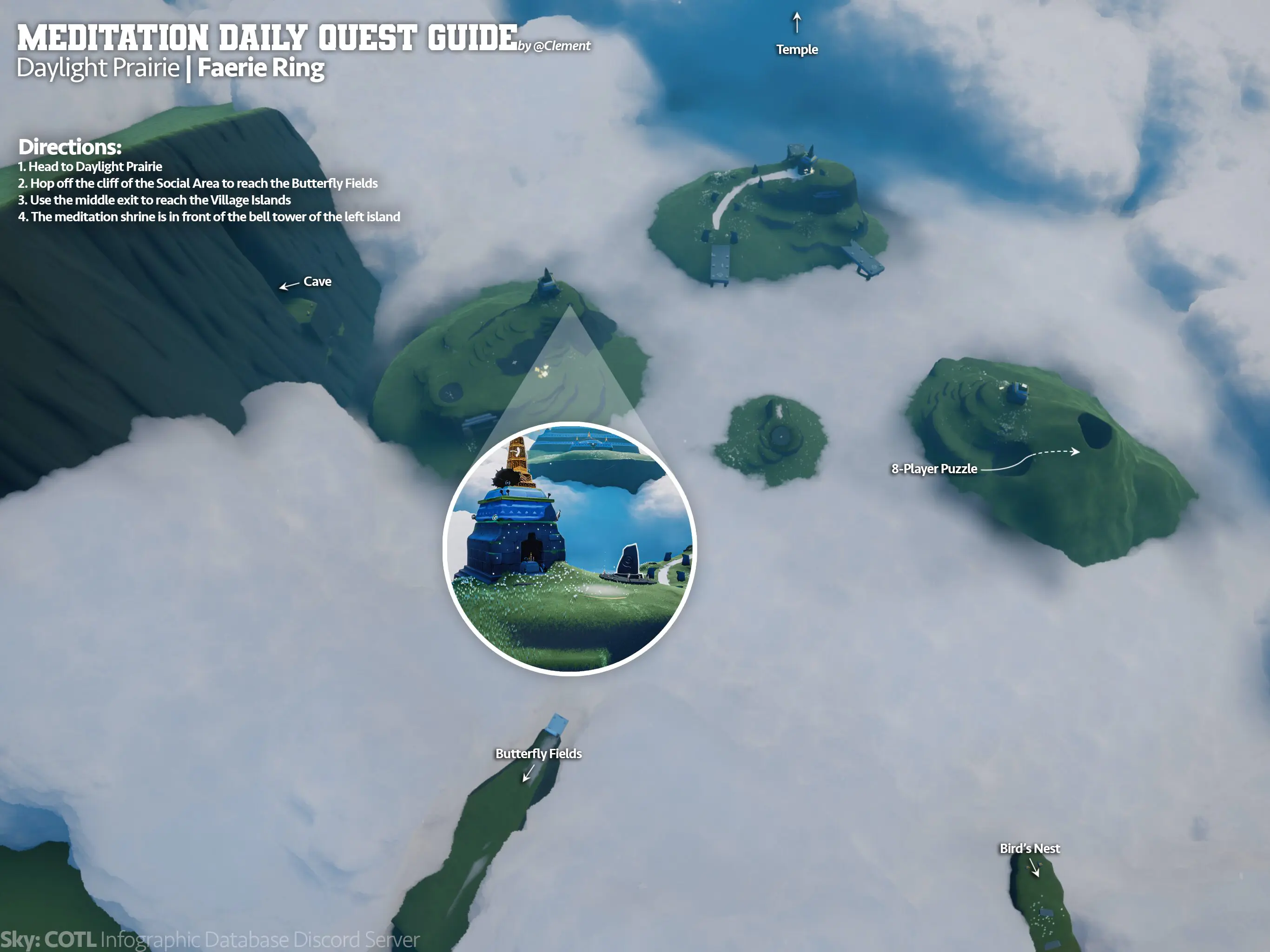 要在精靈花環冥想任務,要前往 ” 精靈花環 “(Faerie Ring)地點,並在左側島嶼的鐘樓前找到 ” 冥想石碑 ” 完成冥想動作。